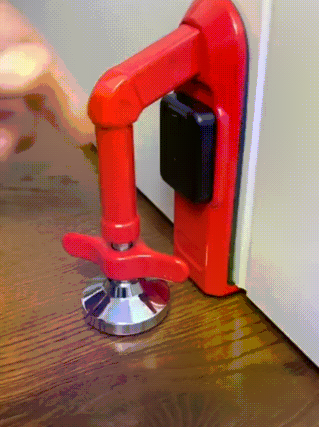 🚪【Fácil de instalar】Sin herramientas. Se instala en un instante en el hueco de una puerta que se abre hacia dentro. Coloque el tope de la cerradura directamente debajo de la manija y ajuste la base para que se sujete firmemente al suelo. En caso de emergencia, el mecanismo de liberación rápida libera el bloqueo con un movimiento ascendente.