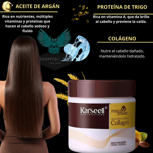 El Secreto del Colágeno. Karseell , tu aliado para un cabello fuerte, suave y lleno de vida. Una inyección de vitalidad para tu cabello.